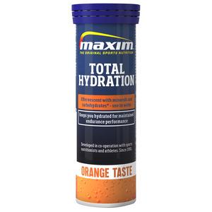 Maxim Total Hydration brusetabletter med orange smag – 10 stk.Maxim Total Hydration Orange røret indeholder 10 opløselige tabletter, som giver dig mulighed for nemt og hurtigt at blande din egen sportsdrik. Hver tablet indeholder 7,3 g kulhydrat og forske (Læs mere)
