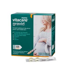 Komplet kosttilskud til dig, der er gravid.30 smarte dagsdoser i praktiske "to-go-packs"Vitacare Mama Garavid er et kosttilskud i et skræddersyet samlet sæt til dig, der er gravid. Det indeholder præcis de næringsstoffer, du og dit barn har brug (Læs mere)